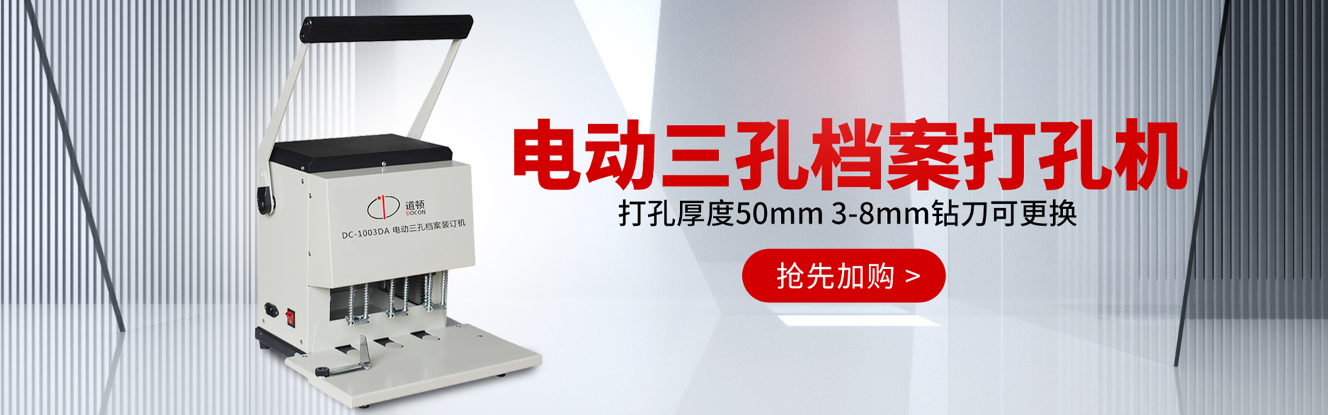 三孔檔案打孔裝訂機分為手動和電動,一次可打三孔,型號多樣,裝訂形式為將打過孔的文件棉線裝訂、檔案盒裝訂、檔案夾裝訂等,標準83mm孔距,滿足政府機關單位檔案文件裝訂標準。